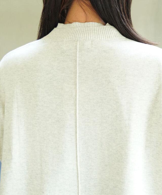 二重になった立体感のある襟元、たっぷり幅広の裾のリブなど