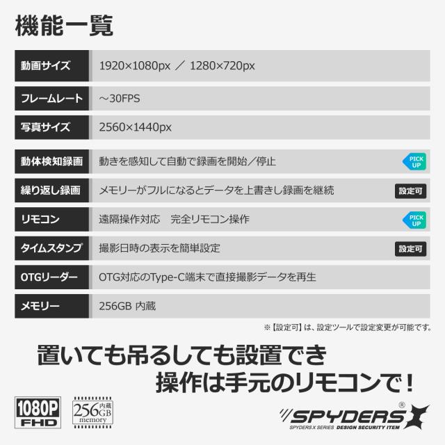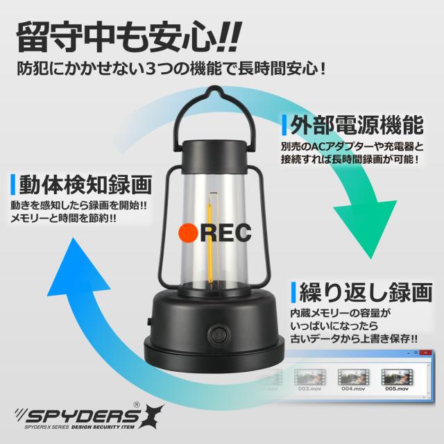 スパイダーズX スパイカメラ 1080P ランタン型カメラ 小型カメラ [H-781] 防犯カメラ 動体検知 OTGリーダー 256GB内蔵