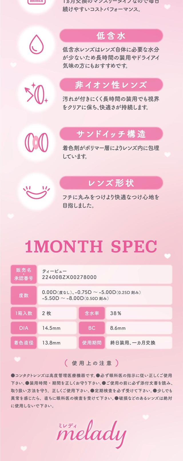 ミレディ カラコン マンスリー 1month 度あり 度なし 1箱2枚入り レンズ 14.5mm melady