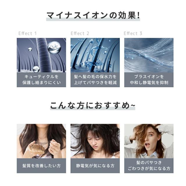 静電気防止効果で髪の広がりを抑制