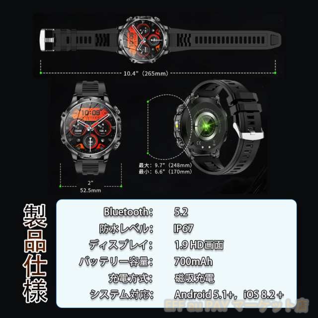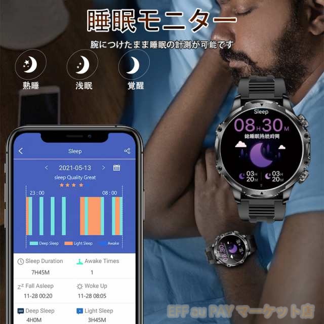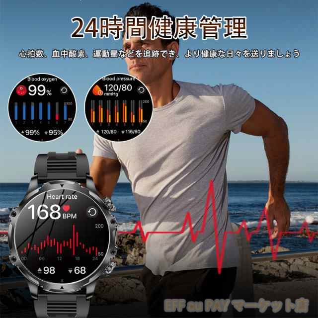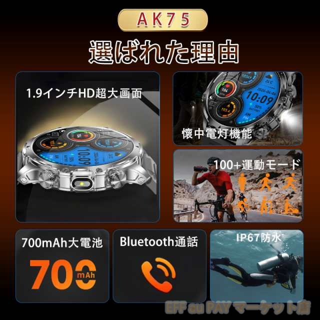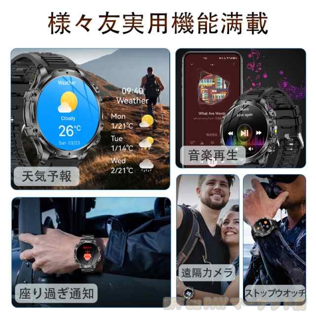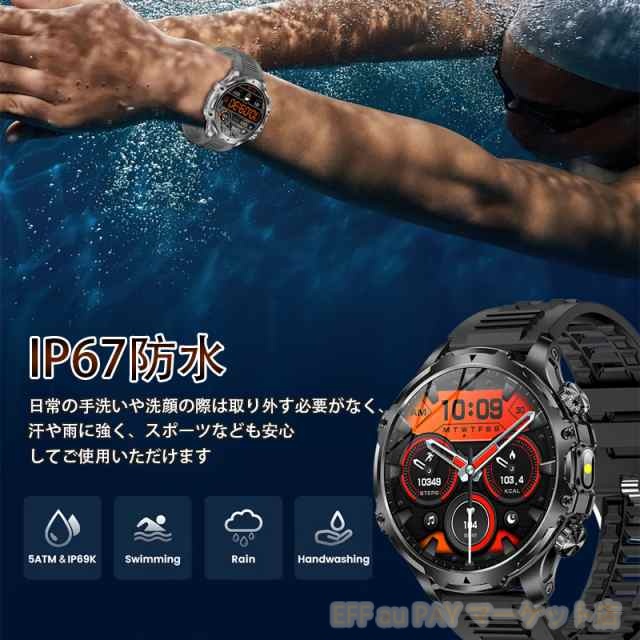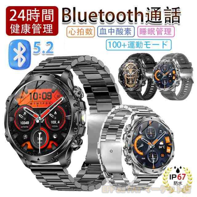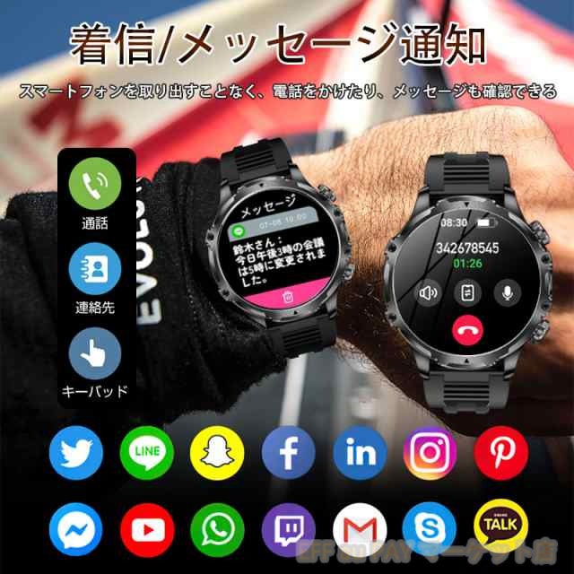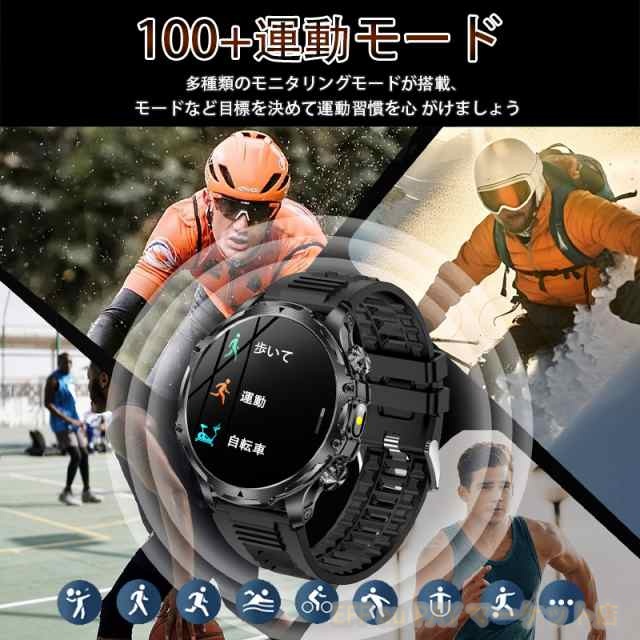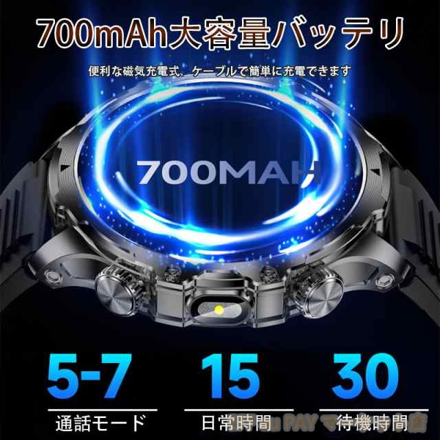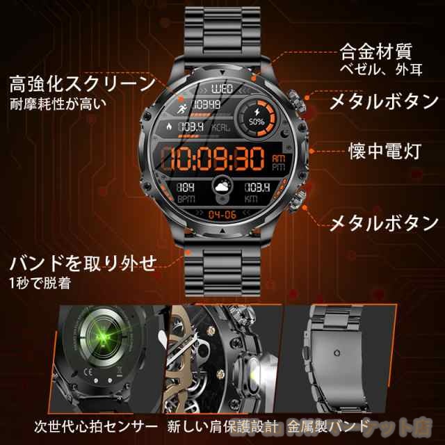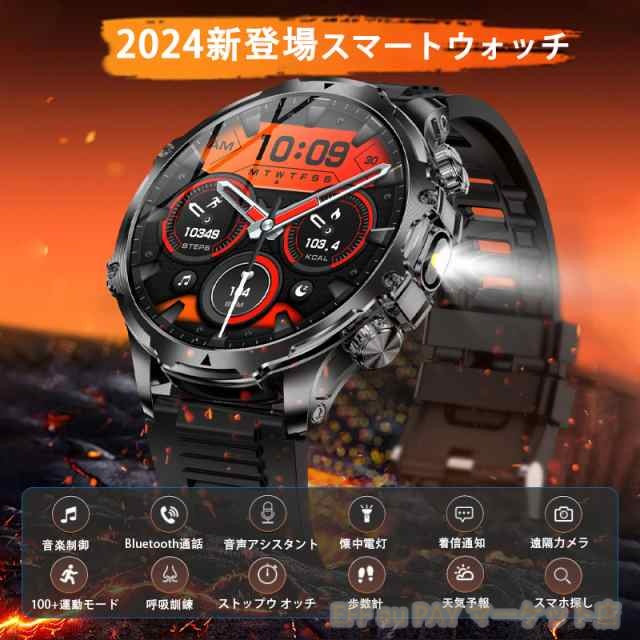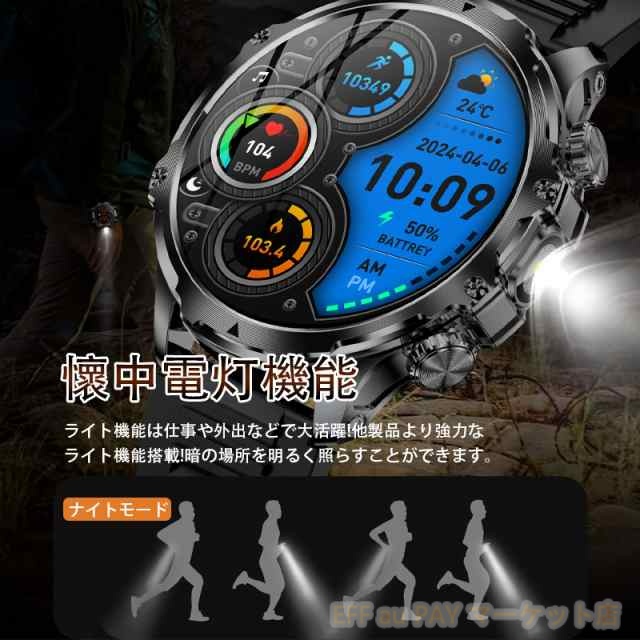 【三太郎の日】スマートウォッチ メンズ 軍用規格 丸型 1.9インチ超大画面 smart watch 血中酸素測定 歩数計 活動量計 通話機能付き 100種類運動モード 腕の懐中電灯 耐衝撃 IP67防塵防水 長持ちバッテリー 腕時計 プレゼント