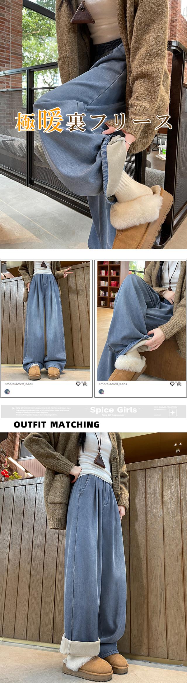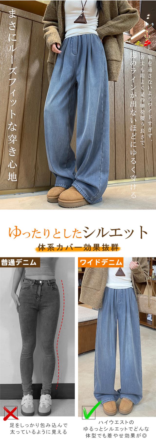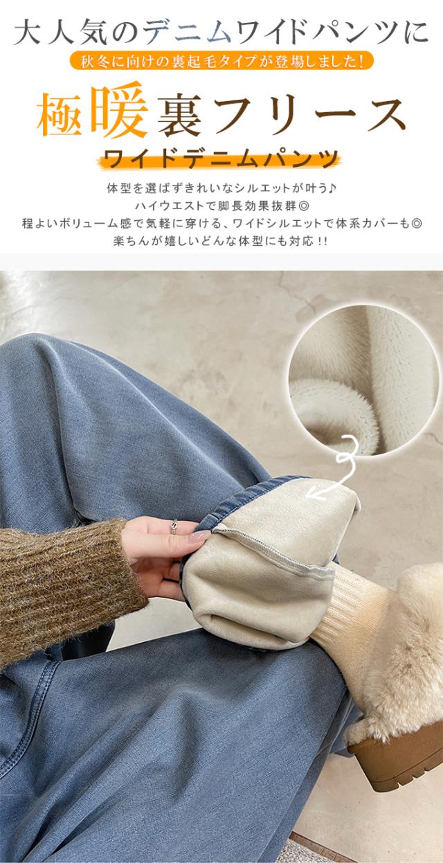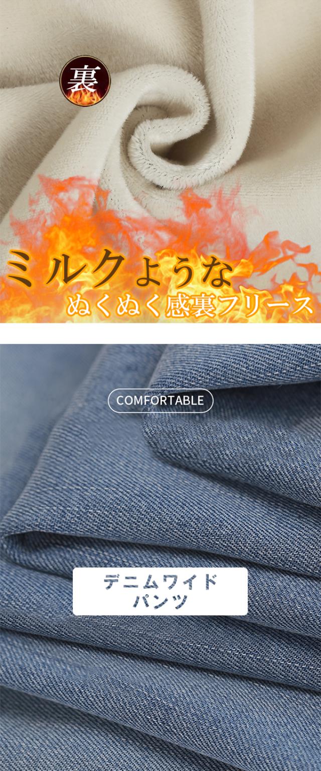 10%OFF、3222円、裏フリース ぬくぬく ワイドデニムパンツ 裏起毛 暖か あったか ウエストゴム レディース ハイウエスト ジーンズ きれいめ 大きいサイズ ゆったり ストレート ボトムス シンプル 大人 おしゃれ 体型カバー 美脚効果