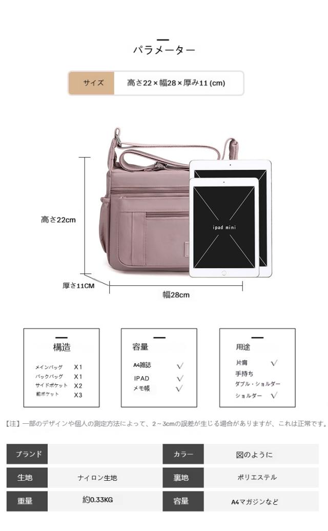 ショルダーバッグ、ナイロンバッグ、撥水、軽量、通勤、通学、旅行、マザーズバッグ、レディース、A4収納、ポケット多め、コンパクト収納、防犯ポケット、おしゃれ、シンプル、肩掛け、クロスボディ、バッグ、多機能、収納力、ナイロン製、日常使い、プレゼント、ギフト、ユニセックス