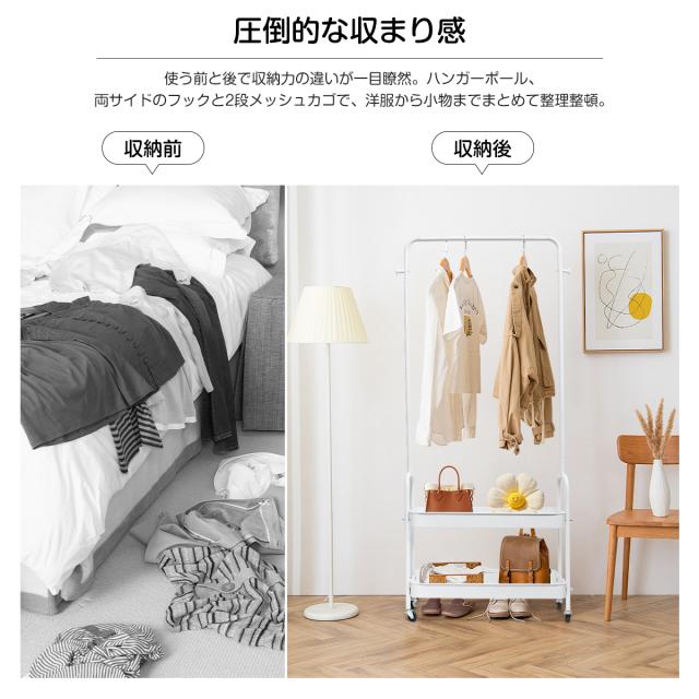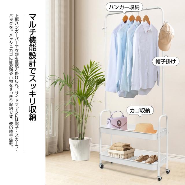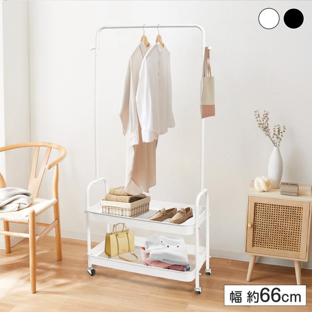 【送料無料】ハンガーラック コートハンガー 二段 おしゃれ スリム 北欧 シンプル スチール コート掛け 鞄置き 衣類収納 省スペース 組立簡単 頑丈 洋服 服 収納 黒 白 リビング収納 ワードローブ