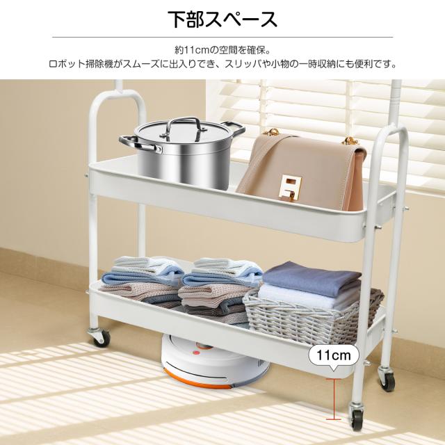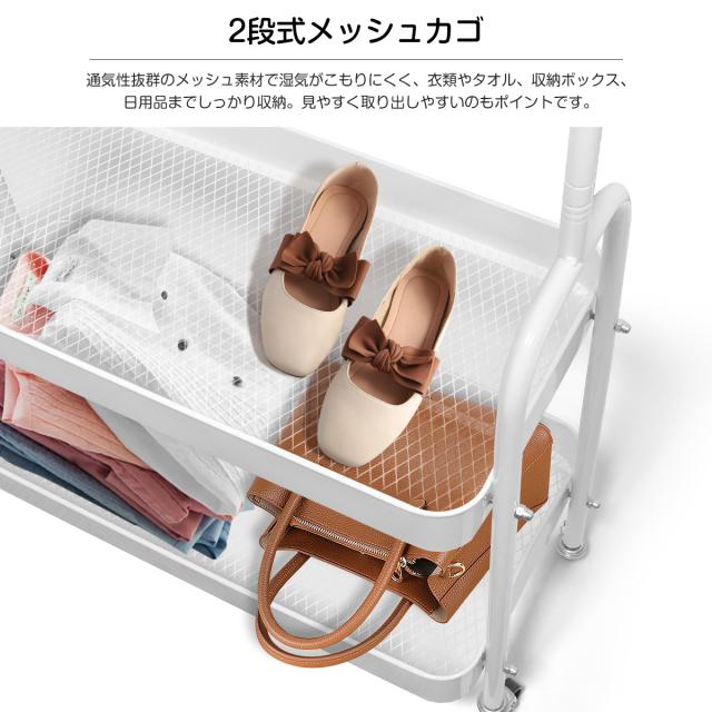 このワゴンは、2段のメッシュバスケットとスライド式引き出し、さらに便利な天板を備えた、多機能収納アイテム。キッチンでは調味料や炊飯器、リビングでは雑誌やリモコン、寝室では衣類やタオルなど、あらゆるシーンで大活躍します。