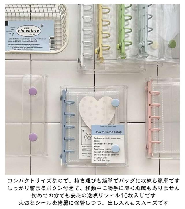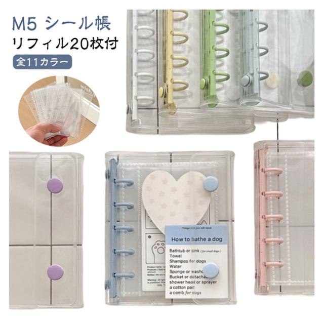 シール帳 M5【リフィル20枚付】バインダー 透明 手帳 シールバインダー シール手帳 台紙 5穴 クリアバインダー シール収納 推し活グッズ 女の子 男の子 ポケットリフィル付き 推し活 大人のシール帳 DIY活用 推し活グッズ