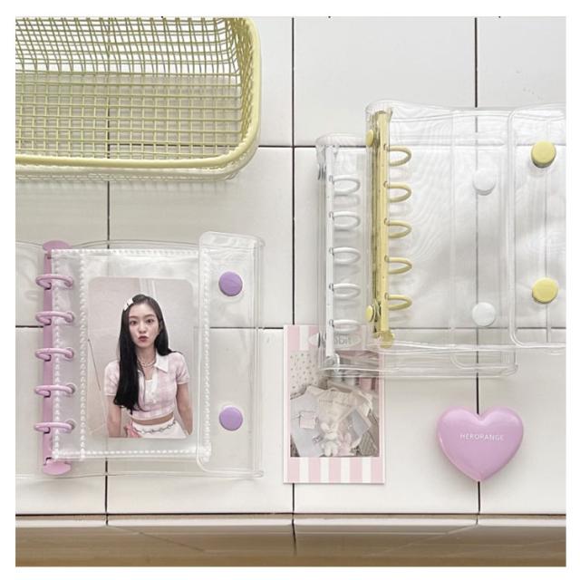 | 【M5 シール帳】 【リフィル20枚付】 【全11カラー】 透明デザイン×パステルカラーが可愛いシールバインダーです 収納するだけでなく、見た目も楽しめる“映えアイテム”です ※こちらはシールやカード等を収納するシールバインダーです 画像のカードやシール等はついてきませんので、ご注意下さい コンパクトサイズなので、持ち運びも簡単でバッグに収納も簡単です しっかり留まるボタン付きで、移動中に勝手に開く心配もありません 初めての方でも安心の透明リフィル10枚入りです 大切なシールを綺麗に保管しつつ、出し入れもスムーズです 柔らかくて耐水性のあるPVC素材を使用しています 雨の日やバッグの中でも汚れにくく、毎日持ち歩いても安心 シール収納だけじゃなく、日記・スケジュール帳・旅の思い出アルバムとしても大活躍! 透明表紙を活かして「表紙デコ」も楽しめるので、自分だけのオリジナルブックができます | |