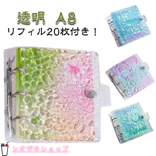 【リフィル20枚付き】 シール帳 透明 バインダー A8 女の子 はがせる 3穴 シールバインダー シール手帳 コンパクト手帳 ミニサイズ 透明シール帳 シール台紙 シール収納 クリアバインダー おしゃれ ウエーブ型 送料無料