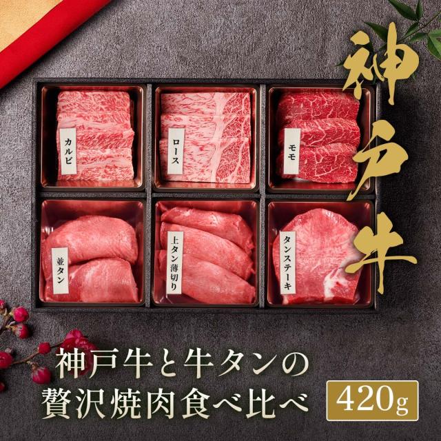 神戸牛&牛タン焼肉食べ比べ 牛タン3種 神戸牛焼肉3種 焼肉セット 420g~ 焼き肉 やきにく 牛肉 母の日 内祝い 誕生日 ギフト プレゼント お取り寄せ 御祝い グルメ お返し 贈り物 冷凍 国産 和牛 黒毛和牛 外国産