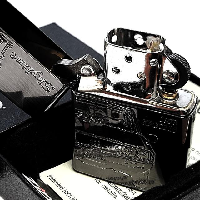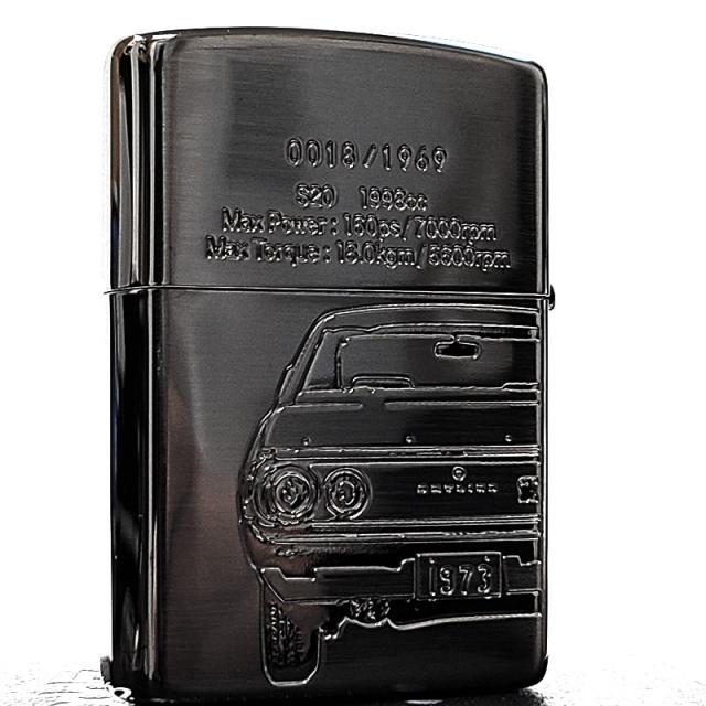 オールブラックながらサテンとミラーのコンビメッキで鈍いコントラストを生み出し、獲物を狩る動きの直前の「静」をイメージさせる、GT-Rならではの風格漂うZIPPOです。