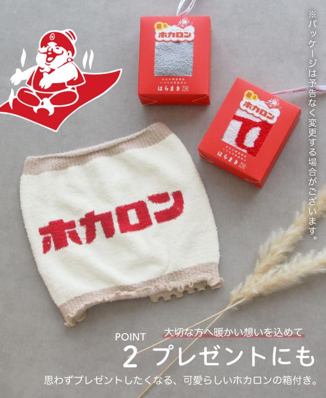 みんなにあったかい♪ ホカロンイラストの腹巻き【着るホカロン】!伸縮性のある生地でお腹や腰をじんわりと温めます。ふわふわ肌触りに、レトロかわいいデザインで、おなかも心もあったか。パッケージも可愛いので冬のギフトにもおすすめです◎