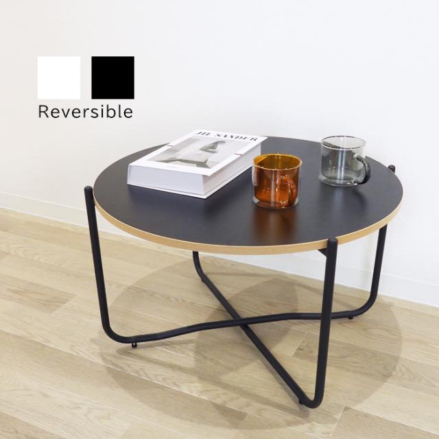Hoola. リバーシブル 丸テーブル 直径60cm 高さ39cm ブラック ホワイト MDF 木材 鉄フレーム 黒 白 円 丸形 カフェテーブル ティーテーブル おしゃれ オシャレ かわいい シンプル モノトーン 家具 玄関 リビング 寝室 韓国インテリア