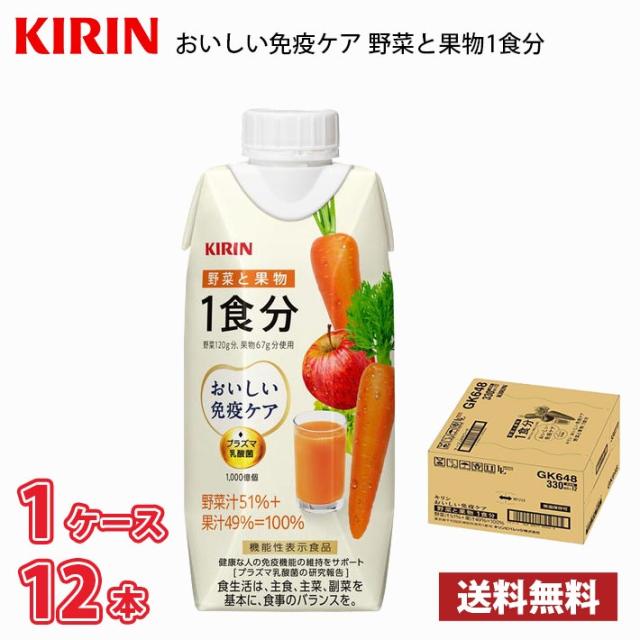 キリン おいしい免疫ケア 野菜と果物 1食分 330ml LLプリズマ 12本入り ● 1ケース 送料無料!!(北海道別途700円、沖縄県配送不可) / プラズマ乳酸菌 機能性表示食品