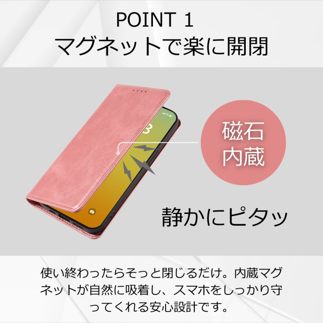 外側は高級感のあるPUレザー、内側は衝撃をやわらげるTPU素材を採用し、大切な端末をしっかり保護します。