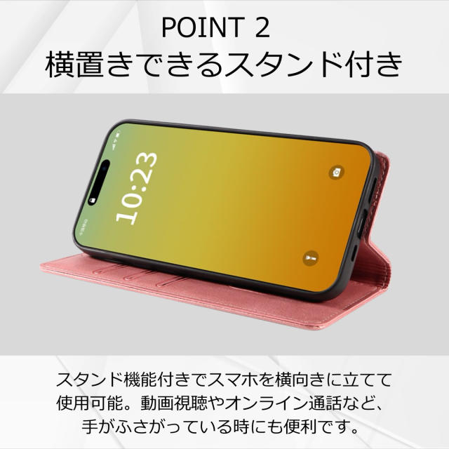 マグネット開閉で使いやすく、横置きスタンドとしても活躍します。