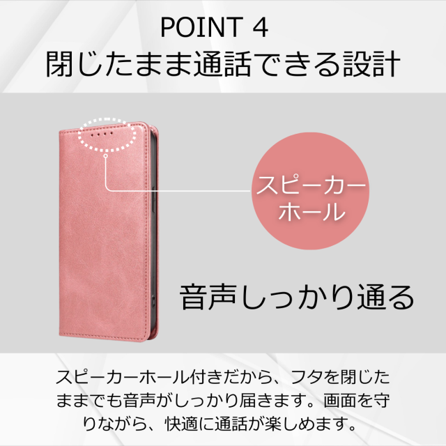 スピーカーホールのおかげでケースを開かずにそのまま通話が可能。手がふさがっているときにも役立ちます。