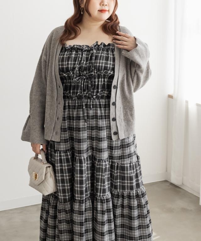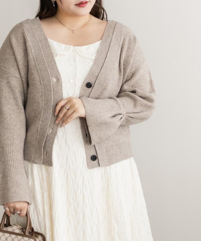 大きいサイズ/レディース/3L/4L/重ねリブVネックカーディガン