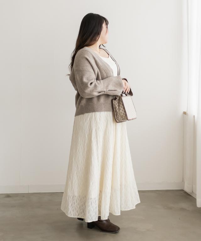 | 3Lサイズを着用して、ちょうどいいサイズ感でした。伸縮性のあるニットでノンストレスに着用できました。秋冬にピッタリな温かみのあるニットで、丈感も少し短めなので女性らしくすっきり着こなせます◎カジュアルにも綺麗目にも合わせやすいからとっても使い勝手のいい1枚です!Vネックがデコルテをきれいに見せてくれるのもうれしいです!羽織としても、トップスの主役としてもコーデしやすいのが嬉しい。手元のタックがポイントになって大人かわいい雰囲気です♪ |