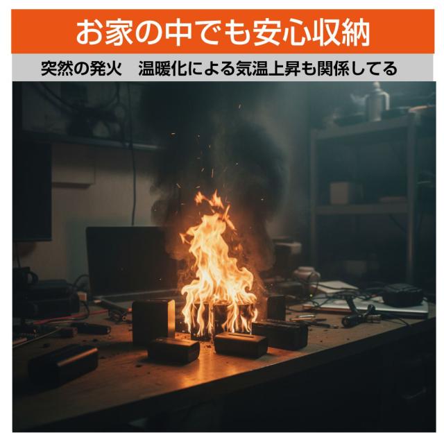 \耐火・耐熱・防爆 に特化したセーフティケースです!/ 万が一モバイルバッテリーが発火、爆発した場合でも炎や煙を閉じ込めることで被害を最小限に抑えることができます。 |