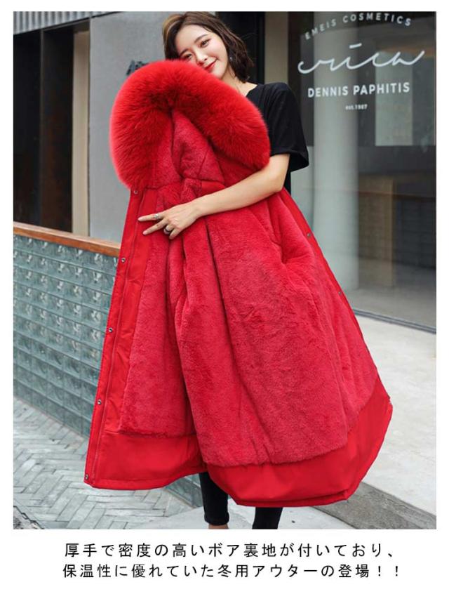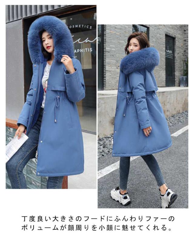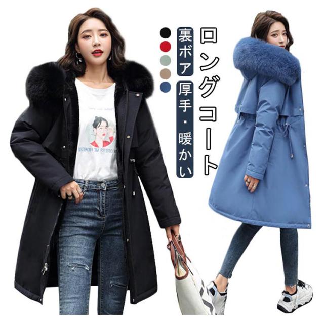 ロングコート レディース モッズコート 冬 裏起毛 裏ボア 暖かい 寒さ対策 フェイクファー ボリューム アウター フード付き ロング丈 ミリタリー コート 冬服 中綿 厚手 きれいめ カジュアル 秋冬 大きいサイズ