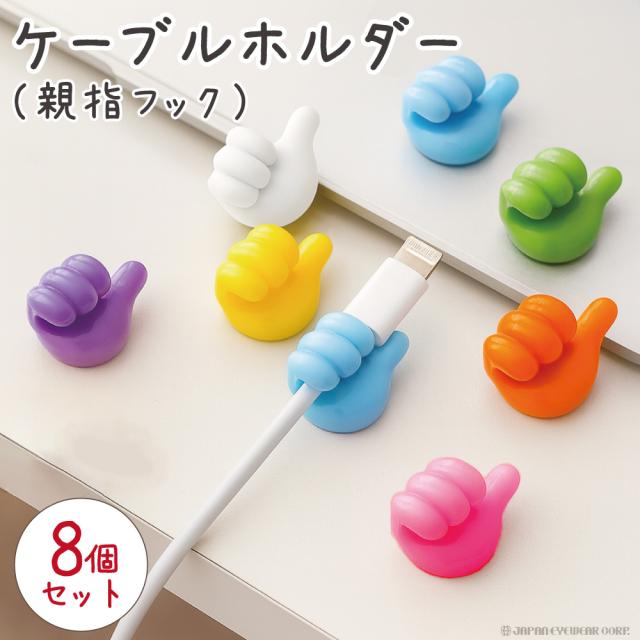 ケーブルホルダー 壁掛けフック 親指 8個セット ケーブルホルダー 8個 テープ式 カラフル 収納 テーブル 整頓 整理 デスク周り 車載 スマホ パソコン 配線 コード イヤホンコード 固定 充電ケーブル かわいい サムズアップ 親指フック