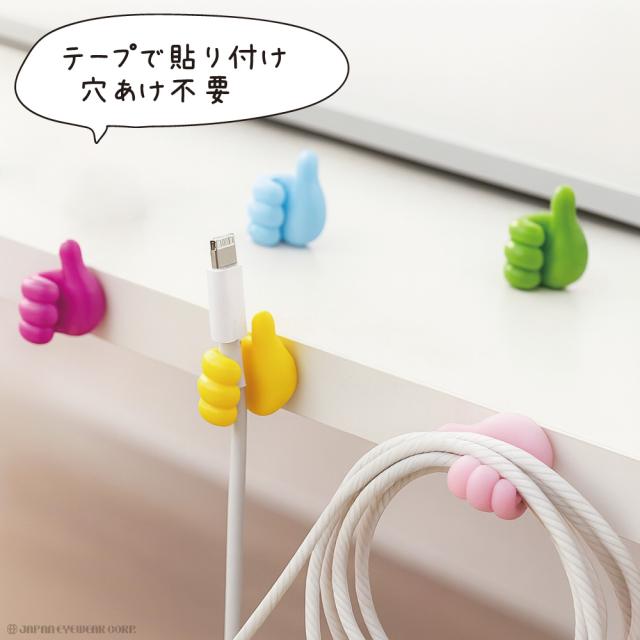 ケーブルホルダー 親指 フック いいね サムズアップ 8個セット シンプル カラフル 青 ピンク 紫 オレンジ 緑 黄色 白 両面テープ デスク整理 収納 配線ケーブル 簡単設置 配線グッズ スロット まとめる グッズ 車載 シリコン 雑貨 整理整頓 掃除 コード収納 断線防止 ガジェット 整理 きれい スマートフォン 充電ケーブル かわいい 雑貨 コンパクト