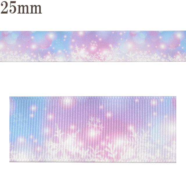 プリントリボン ゆめかわバブルと雪の結晶リボン 幅25mm 1m単位 切り売り (3m以上)