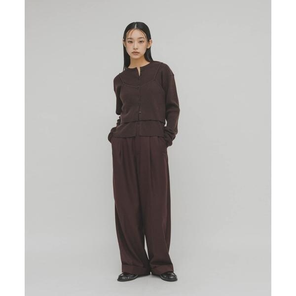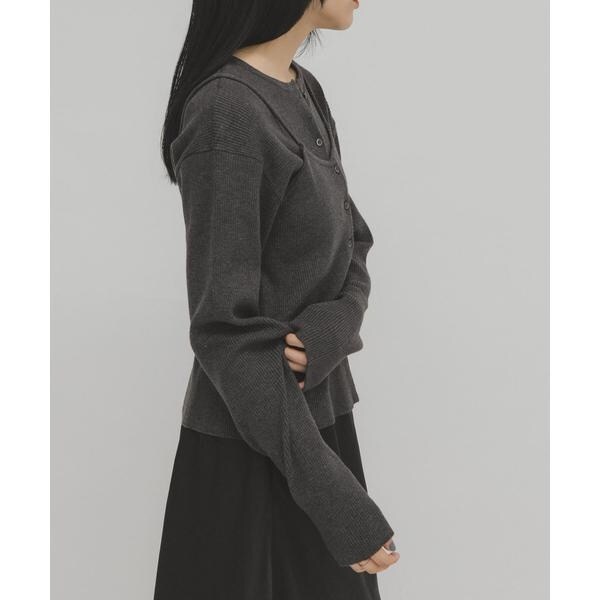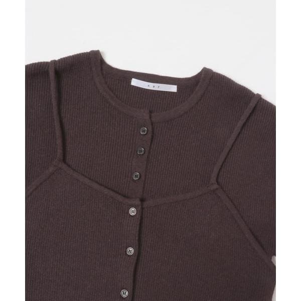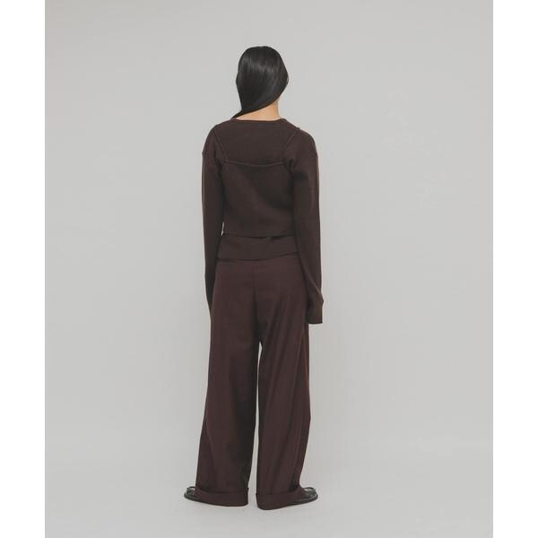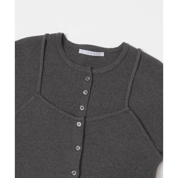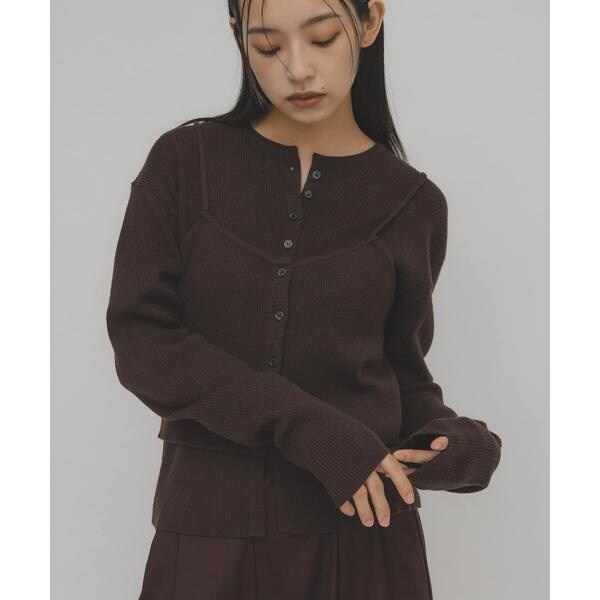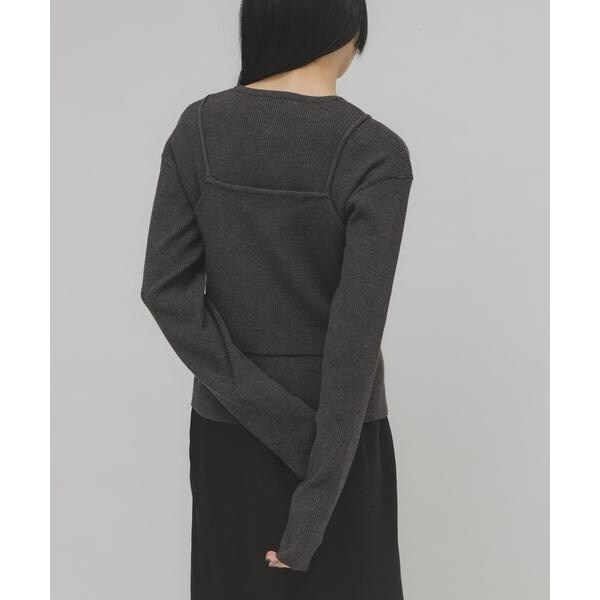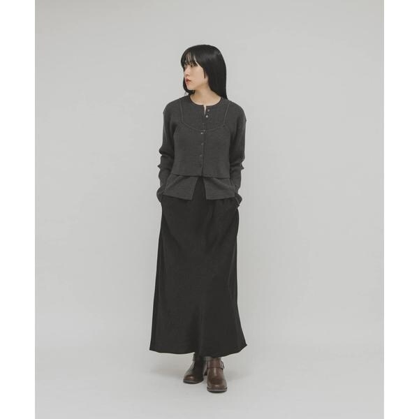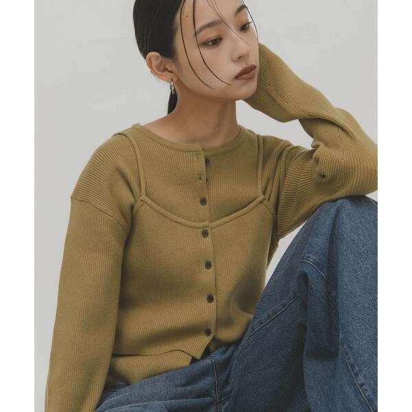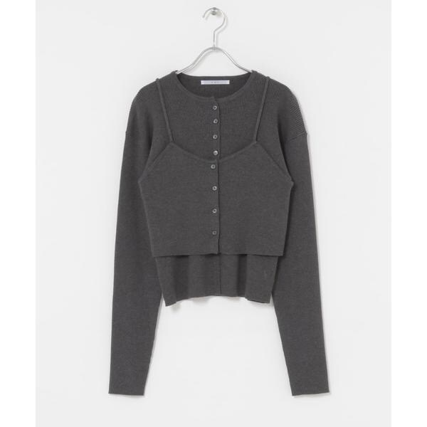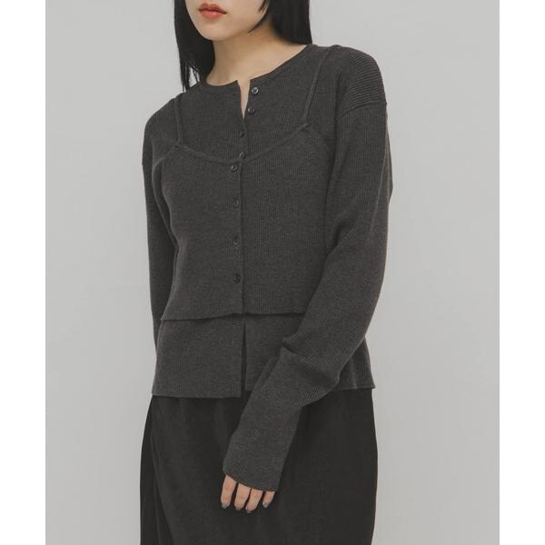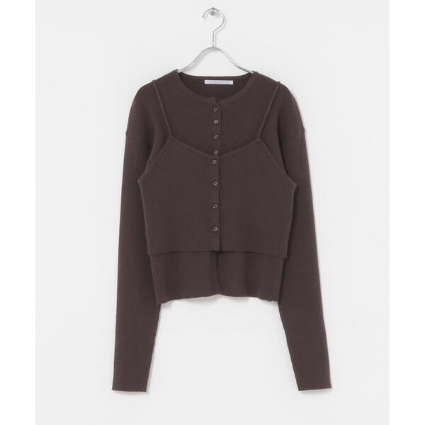肌触りの良い素材を使用したクルーネックカーディガンと、取り外し可能なビスチェがセットになったお得なアイテム。フィット感がありつつも、肩やアームホール、バストラインにかけて少しゆとりを持たせました。セット使いはもちろん、別々でも使用いただけるので、様々な着こなしが楽しめます。