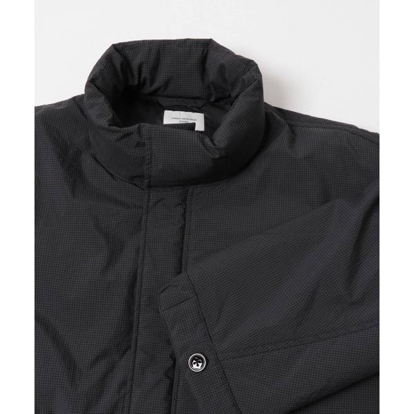 ナイロン素材に繊細なグラフチェックをあしらった、軽やかな着心地の中綿ショートモッズコート。