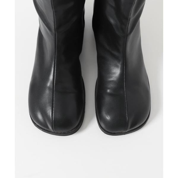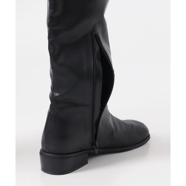 ぷっくりとしたラウンドトゥがポイントのロングブーツ。柔らかなストレッチ素材を使用しているので、幅広い方に履いていただけます。着脱がしやすいファスナー付きも嬉しいポイント。スタイリングに合わせやすいカラー展開になっています。
