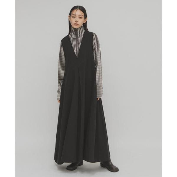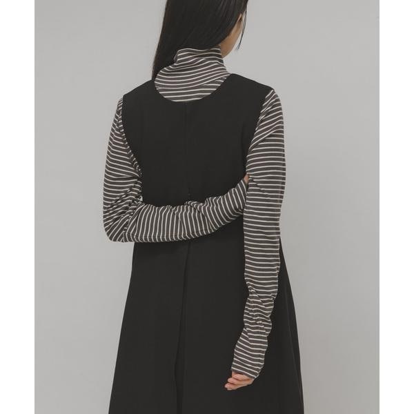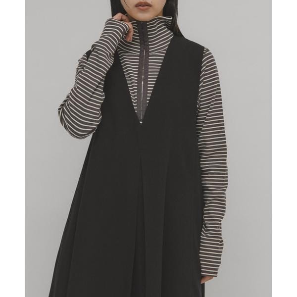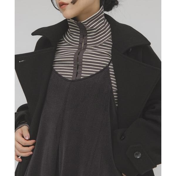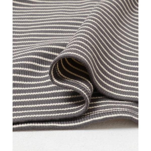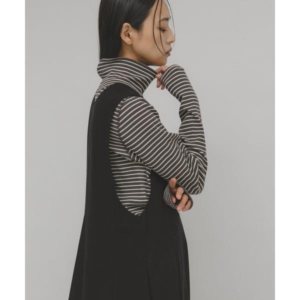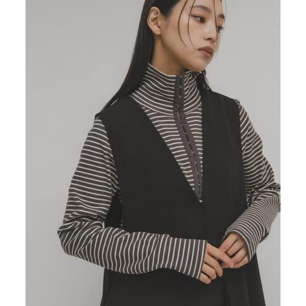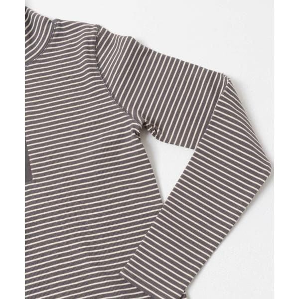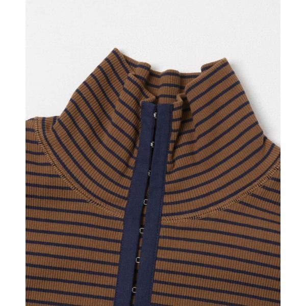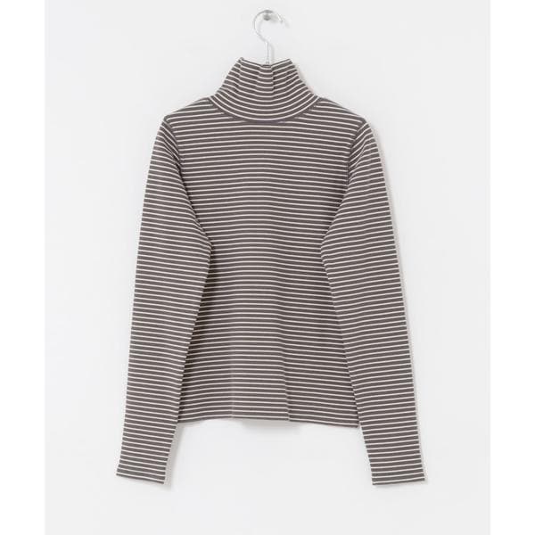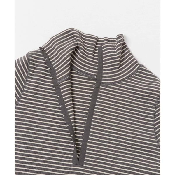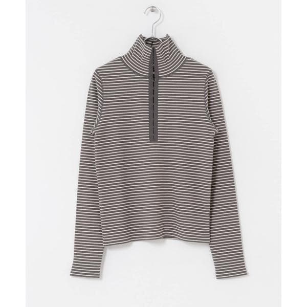 首元のホック開きが特徴的なボーダートップス。ホックは全て閉じてタートルとして着られるだけでなく、少し開き襟のようにしても雰囲気が変わるのでおすすめです。着心地の良い綿を含む素材も嬉しいポイント。メイン使いのみならずインナーとしても重宝するアイテムです。