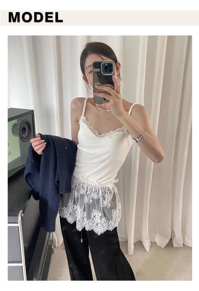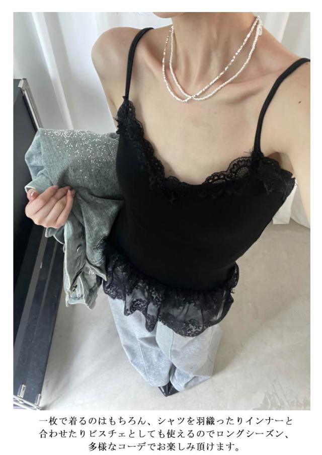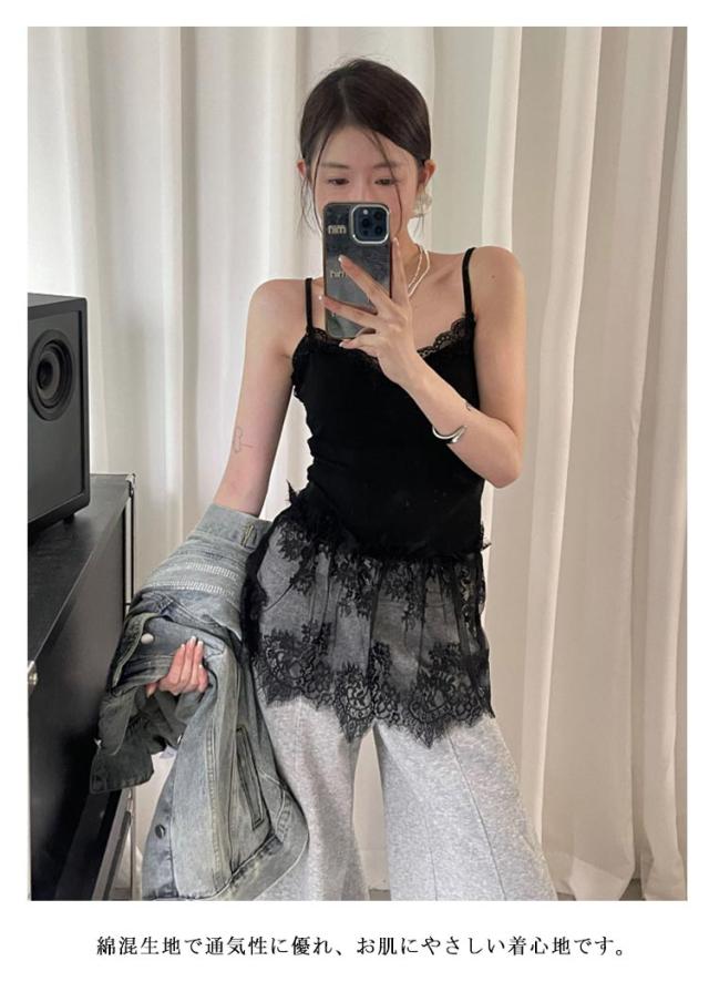 レイヤード レース 付け裾 レディース 綿混 レイヤード 重ね着 カップ付きキャミソール インナー タンクトップ シースルー 体型カバー トップス レイヤード お尻が隠れる 大きいサイズ キャミ オシャレ 黒 白