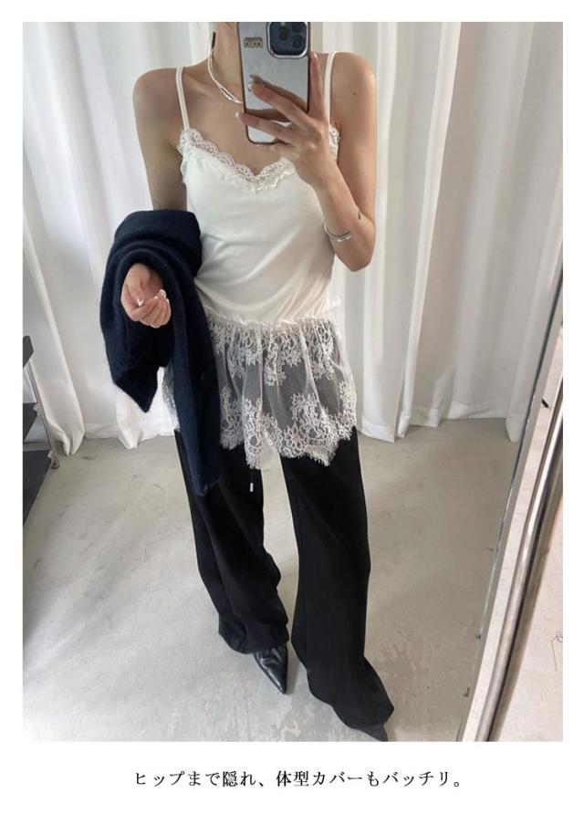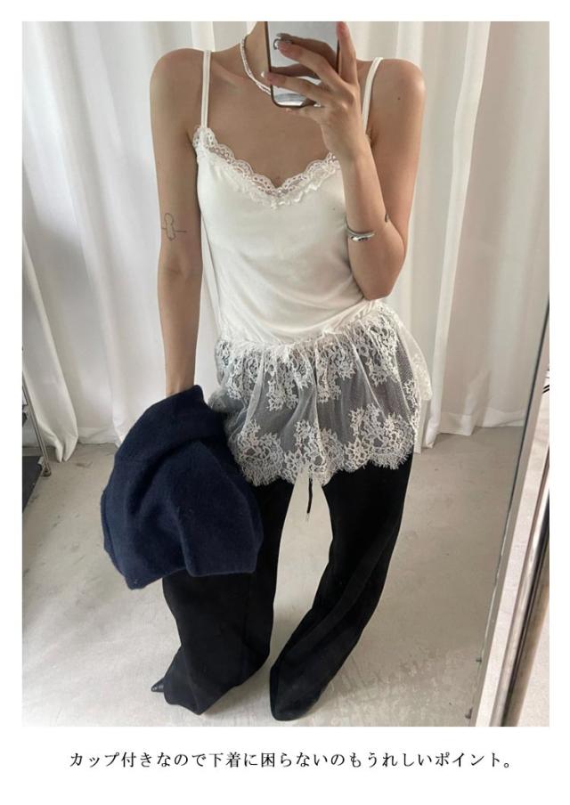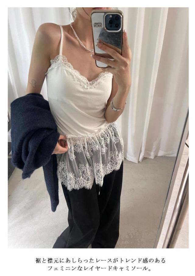 | カップ付きのレイヤードキャミソール! 裾と襟元にあしらったレースがトレンド感のあるフェミニンなレイヤードキャミソール。 カップ付きなので下着に困らないのもうれしいポイント。 ヒップまで隠れ、体型カバーもバッチリ。 綿混生地で通気性に優れ、お肌にやさしい着心地です。 トップスの襟ぐりや肩かららチラ見せさせたり、プルオーバーやブラウスの裾から見せたコーデもお洒落に着こなせるレースキャミソール。 一枚で着るのはもちろん、シャツを羽織ったりインナーと合わせたりビスチェとしても使えるのでロングシーズン、多様なコーデでお楽しみ頂けます。 | |