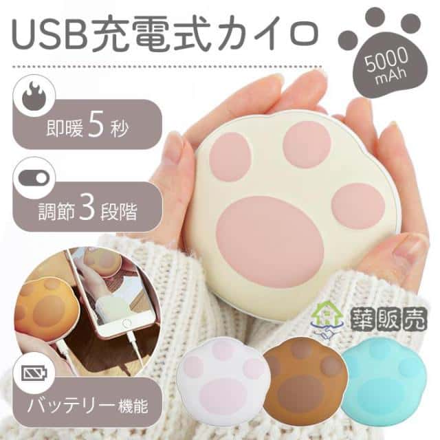 繰り返し使えるエコ。かわいい肉球デザイン。手の中にすっぽり入る充電式 カイロ コンパクトサイズ。