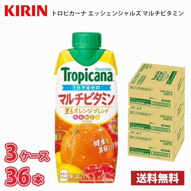 キリン トロピカーナ エッセンシャルズ マルチビタミン 330ml LLプリズマ 36本入り ● 3ケース 送料無料!!(北海道別途700円、沖縄県配送不可)