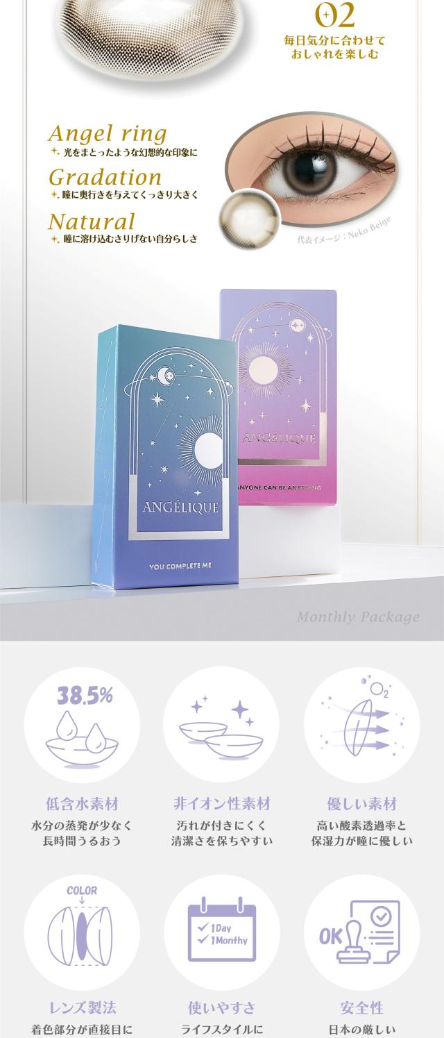 カラコン アンジェリーク マンスリー ANGELIQUE 1month 1箱2枚入り 度あり 度なし 韓国アイドル風 カラー コンタクト ワンマンス 自然 裸眼 水光感 韓国カラコン