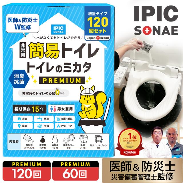 非常用トイレ トイレのミカタPREMIUM 120回分 汚物用袋付き 15年保存 災害 防災 断水 簡易 備蓄 防災グッズ 水の要らないトイレ プレミアム 送料無料 【公式】 IPIC SONAE アイピックソナエ