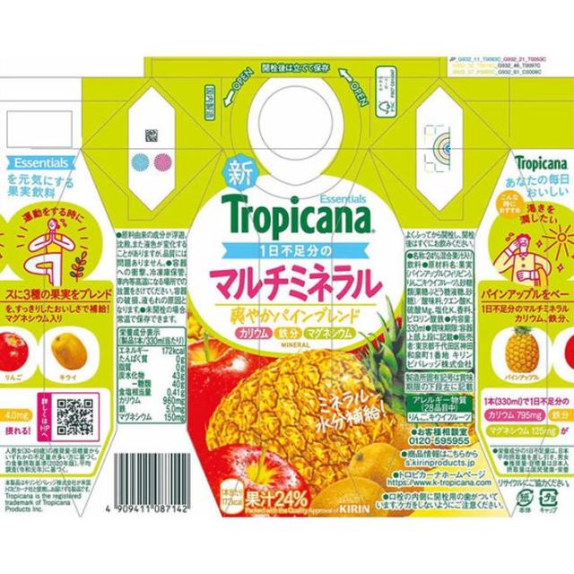 キリン トロピカーナ エッセンシャルズ マルチミネラル 330ml LLプリズマ 36本入り ● 3ケース 送料無料!!(北海道別途700円、沖縄県配送不可)