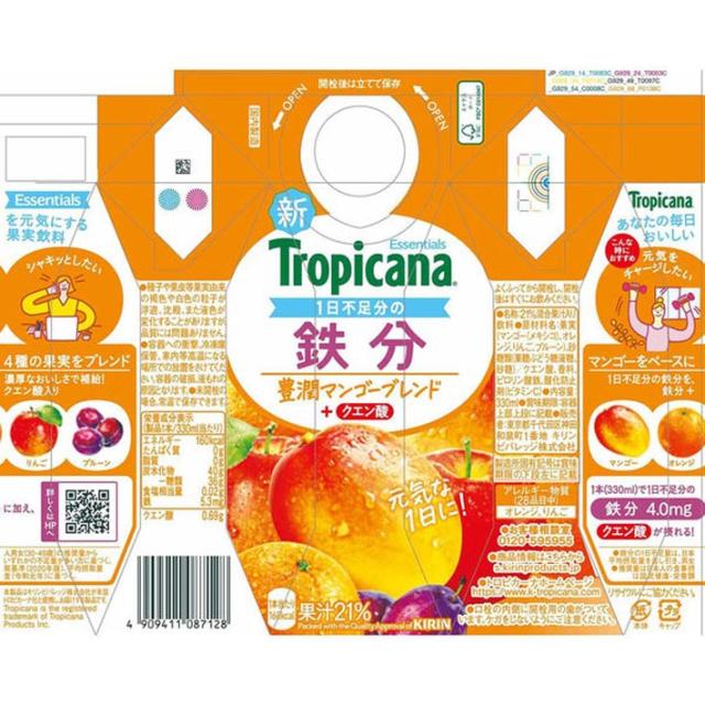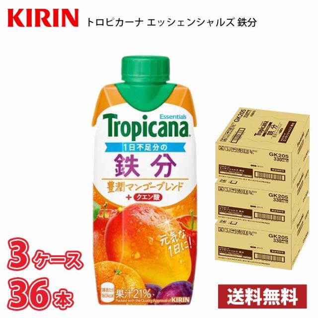 キリン トロピカーナ エッセンシャルズ 鉄分 330ml LLプリズマ 36本入り ● 3ケース 送料無料!!(北海道別途700円、沖縄県配送不可)