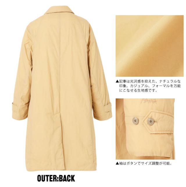 後ろ身頃にはセンターベンツを入れ、足さばきを妨げないつくりに。スーツやセットアップにも自然に馴染むので、通勤・出張などビジネスシーンに最適です。袖口にはサイズ調整ができるタブを備え、風の侵入を防いで保温性を高めています。