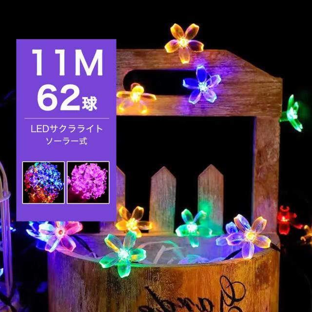 62球 IP44防水 LED 11m イルミネーションライト ソーラー LED 桜 さくら サクラ 花 コントローラー付 点滅モード クリスマス ライト 屋外 飾り クリスマス ソーラーライト 光センサー 太陽光充電 壁 デコレーション ツリー 電球色 自動点灯 一瞬で輝く
