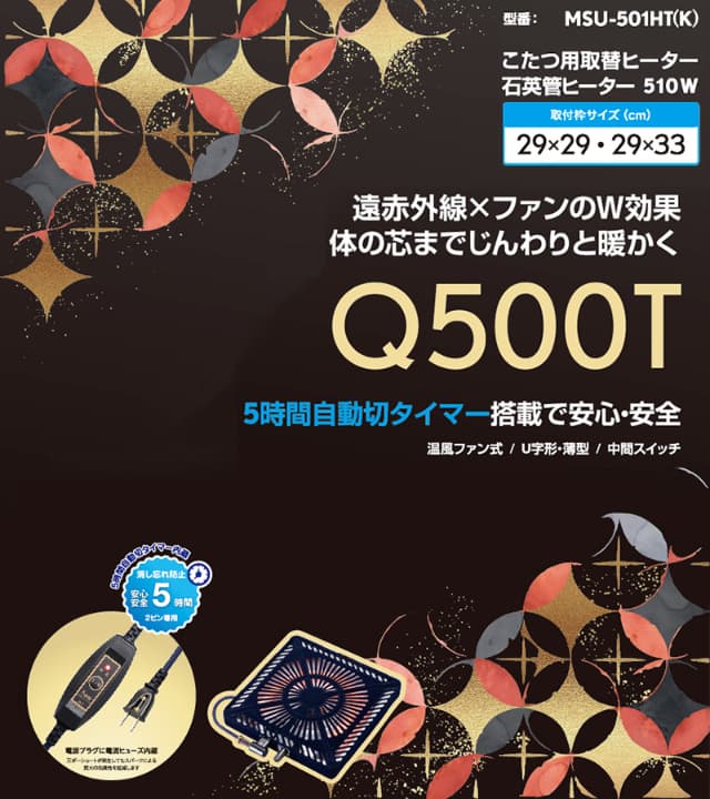 メトロ電気工業 こたつ用 取り替えヒーター MSU-501HT(K) 交換用 薄型 コタツヒーターユニット 5時間自動切タイマー 無段階調節 遠赤外線 U字型 石英管 510W こたつーる Q500T ユアサ炬燵推奨機器 METRO