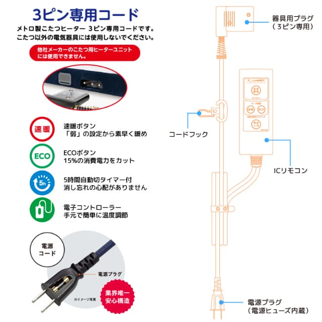 ※メトロ製こたつヒーター3ピン専用です。他社メーカーのヒーターユニットには使用できません。