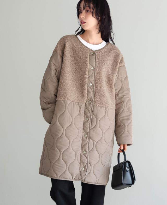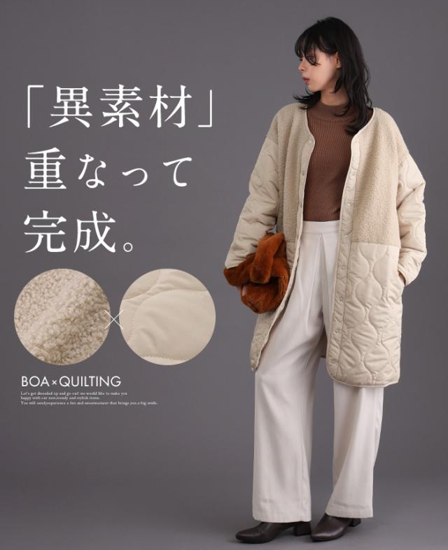 [新作限定P10%×送料無料]ボア×ひょうたんキルトコート アウターコート 軽量【メール便不可】