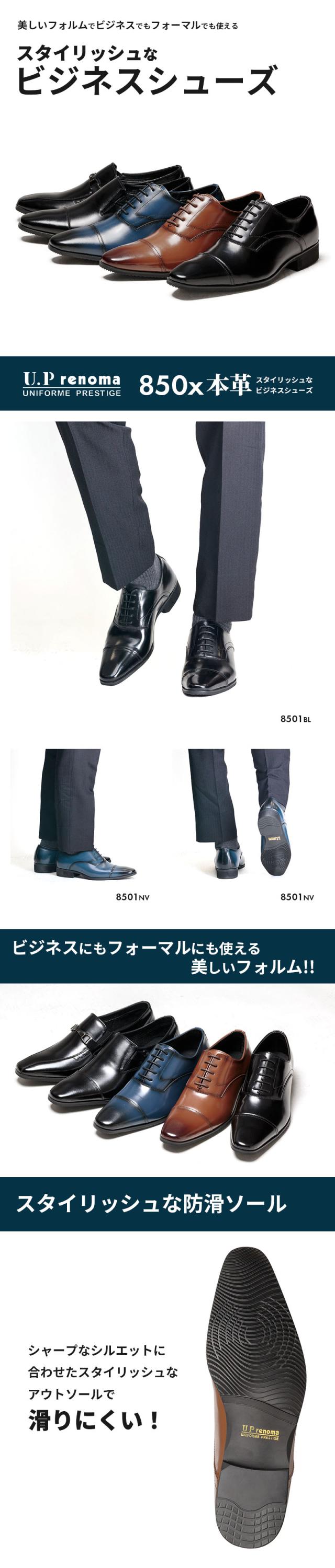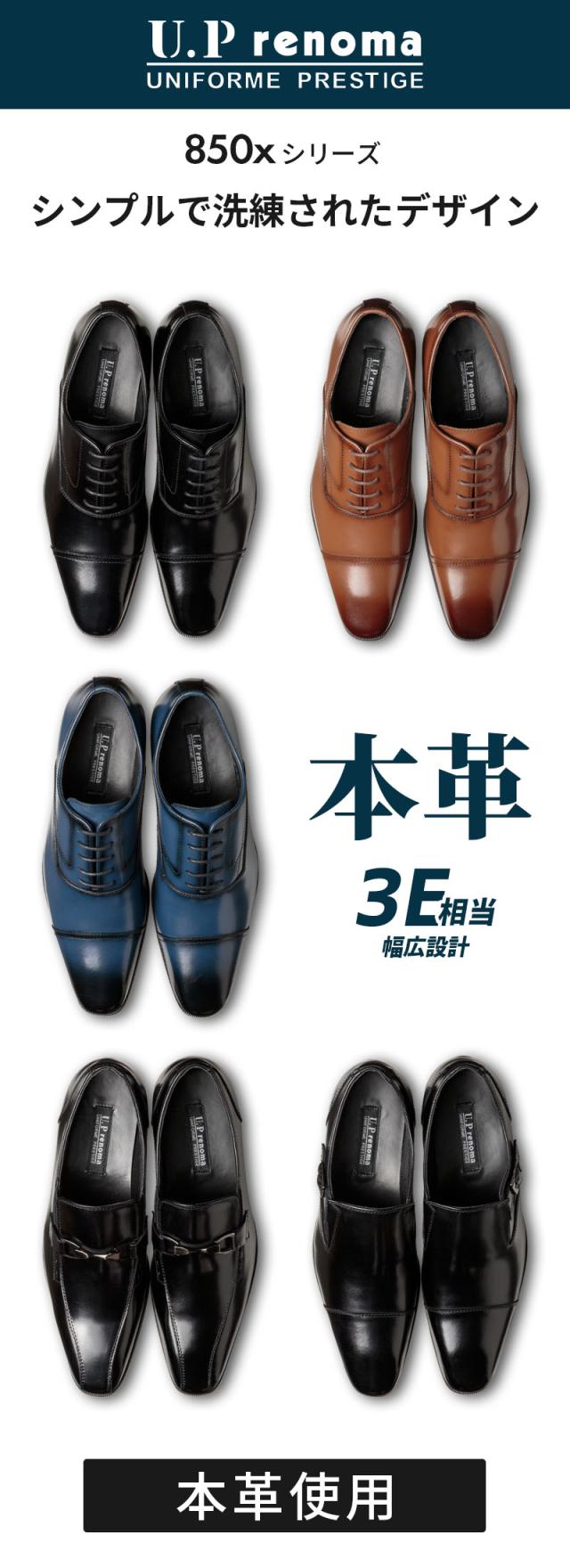 U.P renoma ビジネスシューズ 本革 メンズ 牛革 幅広 3E相当 防滑 ストレートチップ ビット ローファー ヴァンプ ブラック ダークブラウン ネイビー 全5種 25cm 25.5cm 26cm 26.5cm 27cm 8501 8502 8503