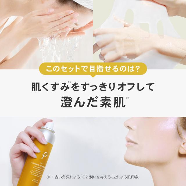 水、BG、ポリソルベート60、二酸化炭素、温泉水、リン酸アスコルビルMg、アスコルビルグルコシド、テトラヘキシルデカン酸アスコルビル、ビスグリセリルアスコルビン酸、フラーレン、ヒアルロン酸Na、加水分解ヒアルロン酸、プラセンタエキス、セレブロシド、グリセリン、メマツヨイグサ種子エキス、ダイズ種子エキス、アルニカ花エキス、セイヨウオトギリソウ花/葉/茎エキス、セイヨウキズタ葉/茎エキス、セイヨウトチノキ種子エキス、ハマメリス葉エキス、ブドウ葉エキス、セージ葉エキス、ハトムギ種子エキス、グレープフルーツ果皮油、PVP、キサンタンガム、クエン酸、クエン酸Na、プロピルパラベン、メチルパラベン、エタノール、フェノキシエタノール