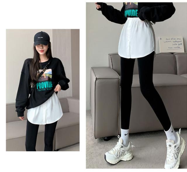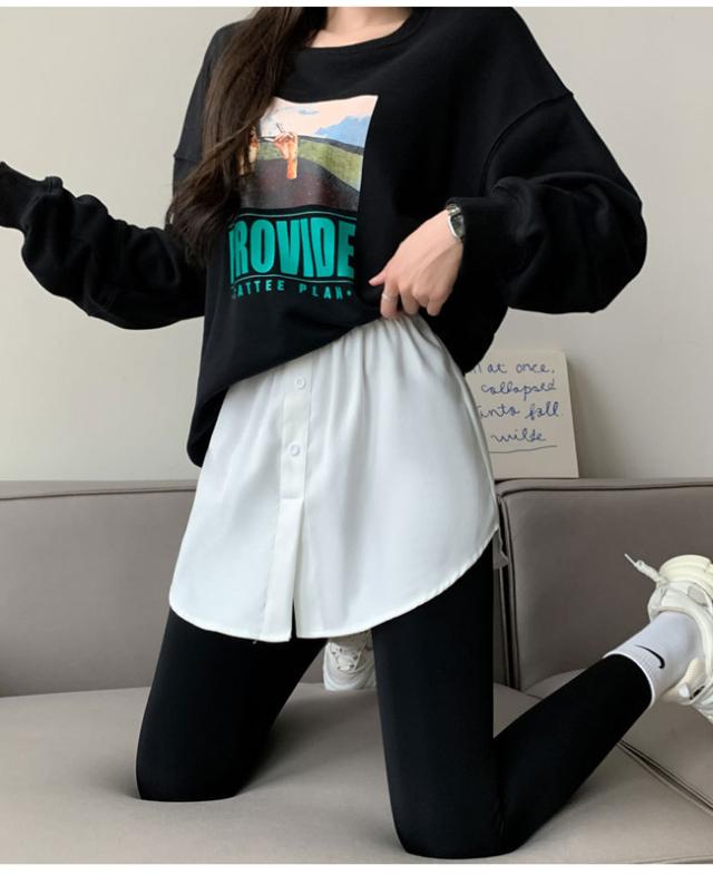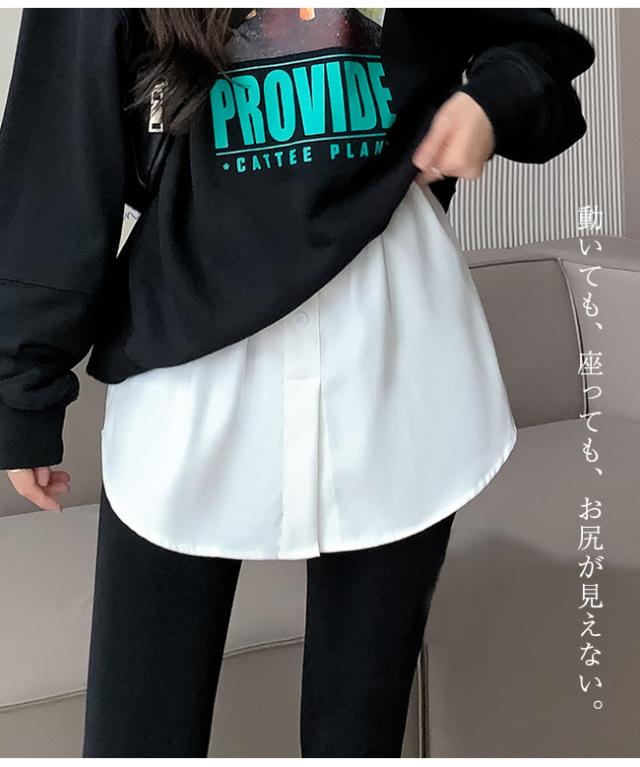 付け裾 トップス レディース シャツ風 レイヤード つけ裾 きれいめ 体型カバー 重ね着風 おしゃれ インナー ゆったり