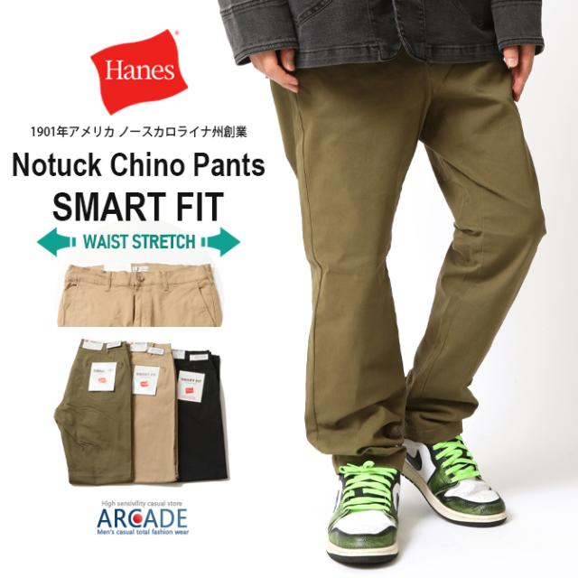 Hanes ヘインズ ストレッチ チノパンツ メンズ 紳士 ノータックパンツ レギュラー