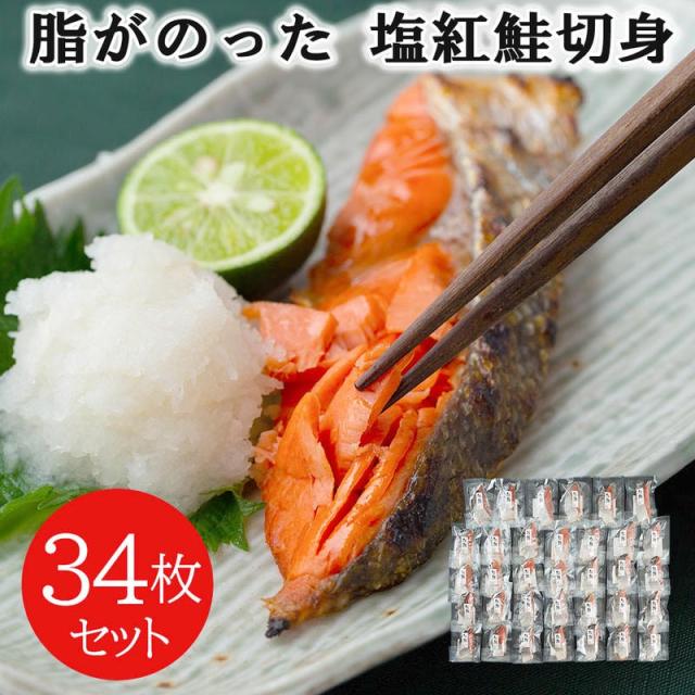 脂がのった 塩紅鮭切身 34枚セット 焼き魚 個別真空パック お召し上がりになる分だけを冷蔵庫で自然解凍 朝食 和食 夕食 お弁当 おにぎり おむすび 具材