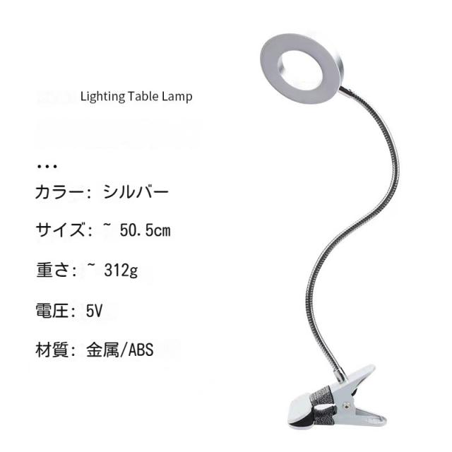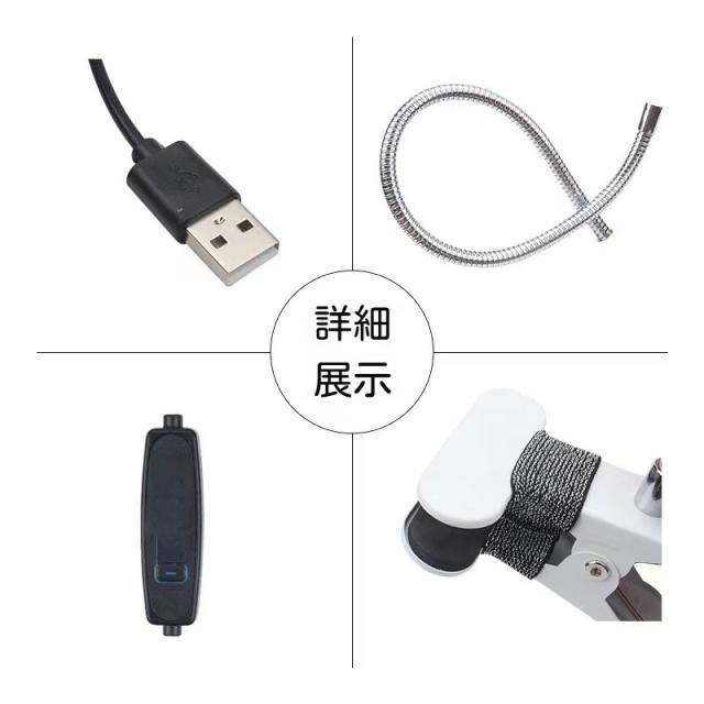 USB接続で簡単に利用可能。 5Vの作業電圧と5Wの電力消費で使用。 ライトがクランプに約2〜4cmまで開くことができる。 クリップライトとしても利用可能。